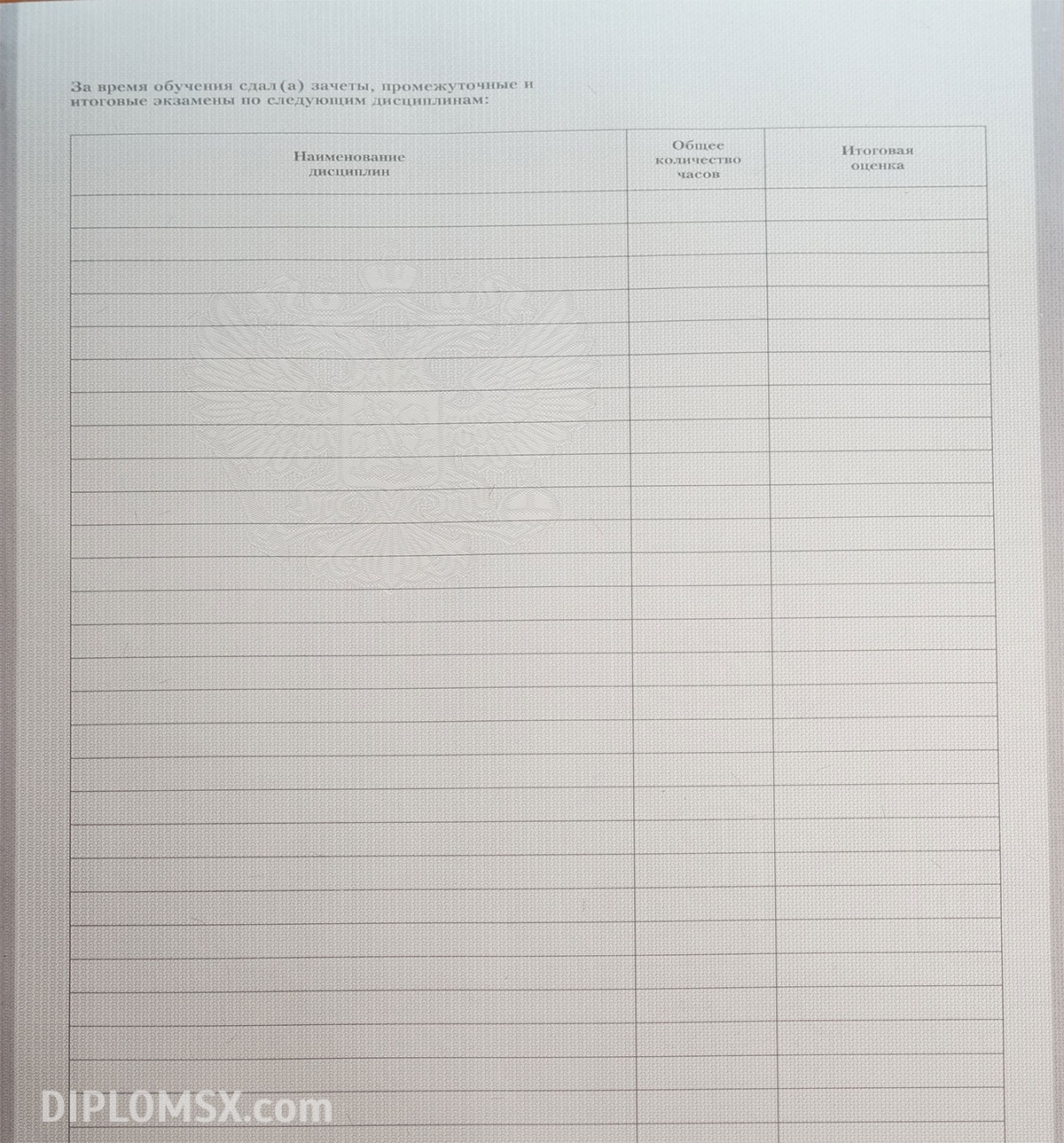 Изготовим не только сам диплом, но и вкладыш с указанием пройденных дисциплин, потраченных на изучение часов и заработанных при сдаче экзаменов и зачетов отметок. К такому диплому техникума не смогут возникать вопросы ни у кого, он не вызовет сомнений ни у работодателей, ни у членов приемных комиссий институтов.